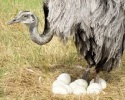 The largest egg laid by a living bird is that of the common ostrich of Africa. It is 6 to 8 inches (15 to 20 centimetres)in length and 4 to 6 inches (10 to 15 centimetres) in diameter.